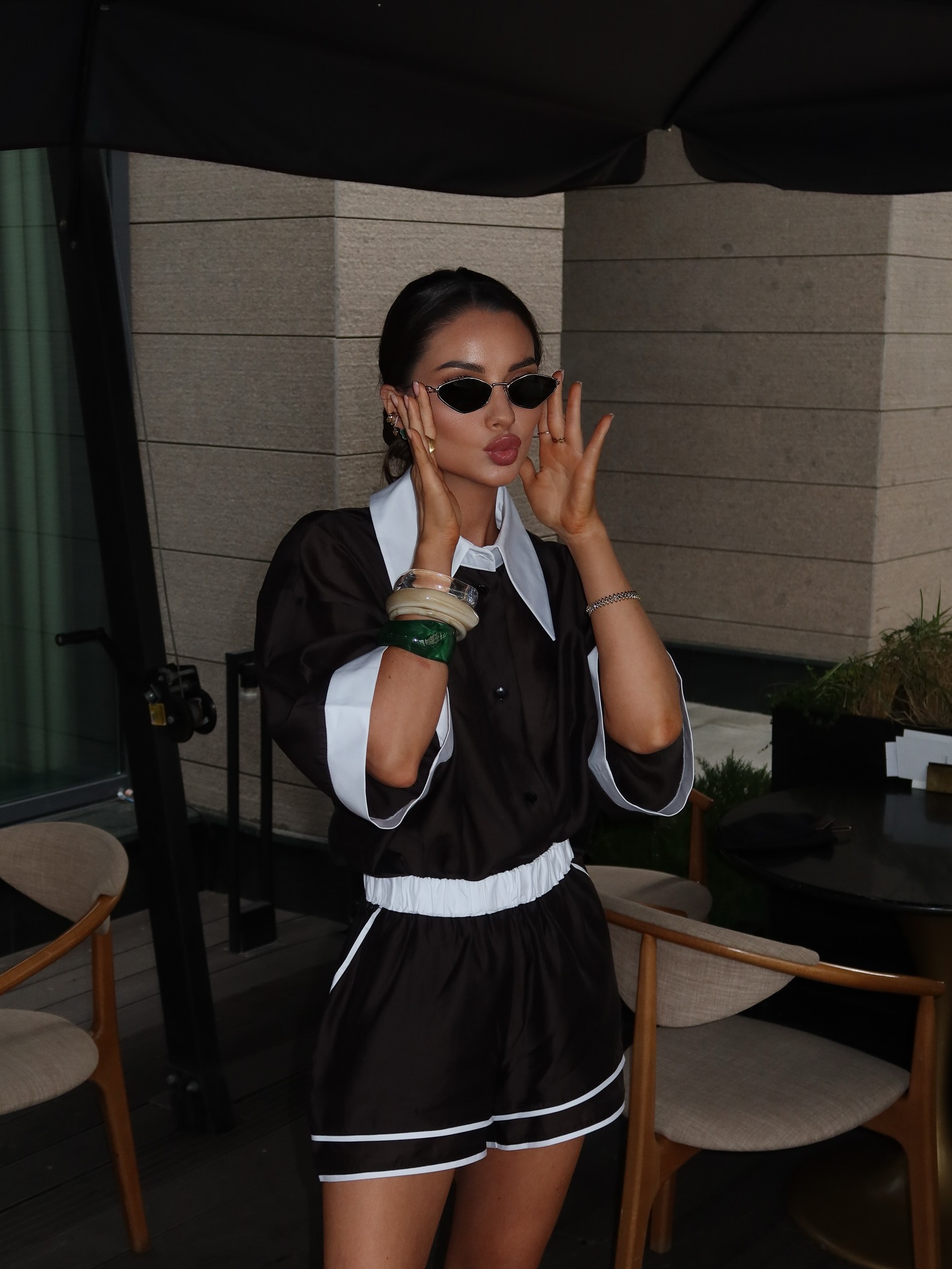 Chemise polyvalente décontractée à manches courtes à col rabattu à la mode + ensemble deux pièces